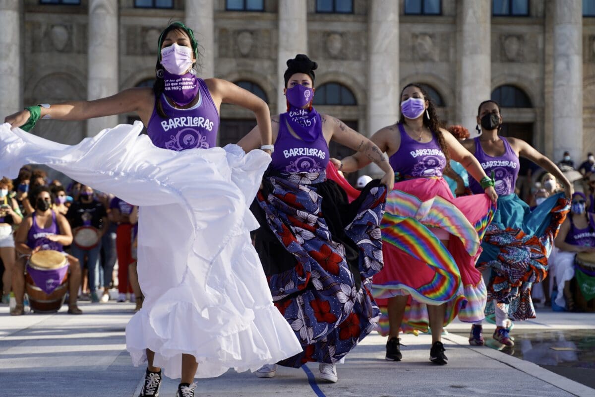 (Fotos por Claudia Carbonell Pericot) Entre ritmos de afropercusión y cantos combativos, la Colectiva Feminista en Construcción se lanzó con una comparsa afrofuturista para visibilizar