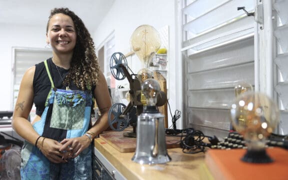 La electricista y artista Marie Ed Sostre Carmona narra los retos de ser mujer en la industria de la electricidad mientras diseña lámparas con antigüedades o según le solicitan sus clientes