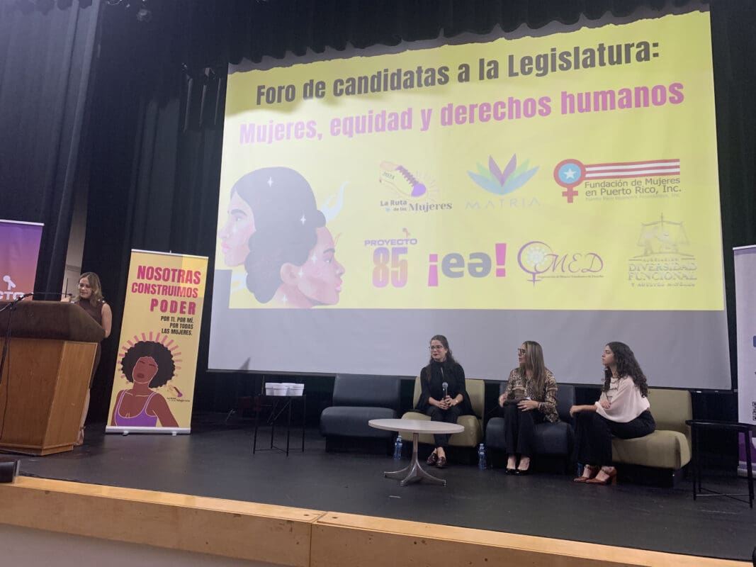 Las candidatas a la Cámara de Representantes, Lilibeth Rosas del Partido Popular Democrático (PPD) y Adriana Gutiérrez Colón del Partido Independentista Puertorriqueño (PIP), así como Cristina Pérez Reyes, candidata al Senado por el Movimiento Victoria Ciudadana (MVC), expresaron estas ideas durante el Foro de candidatas a la legislatura: Mujeres, equidad y derechos humanos. Este evento fue organizado por La Ruta de las Mujeres, un proyecto de apoderamiento social y político que forma parte de Proyecto Matria y que es subvencionado por la Fundación de Mujeres de Puerto Rico. El foro fue moderado por la periodista Grenda Rivera Dávila.