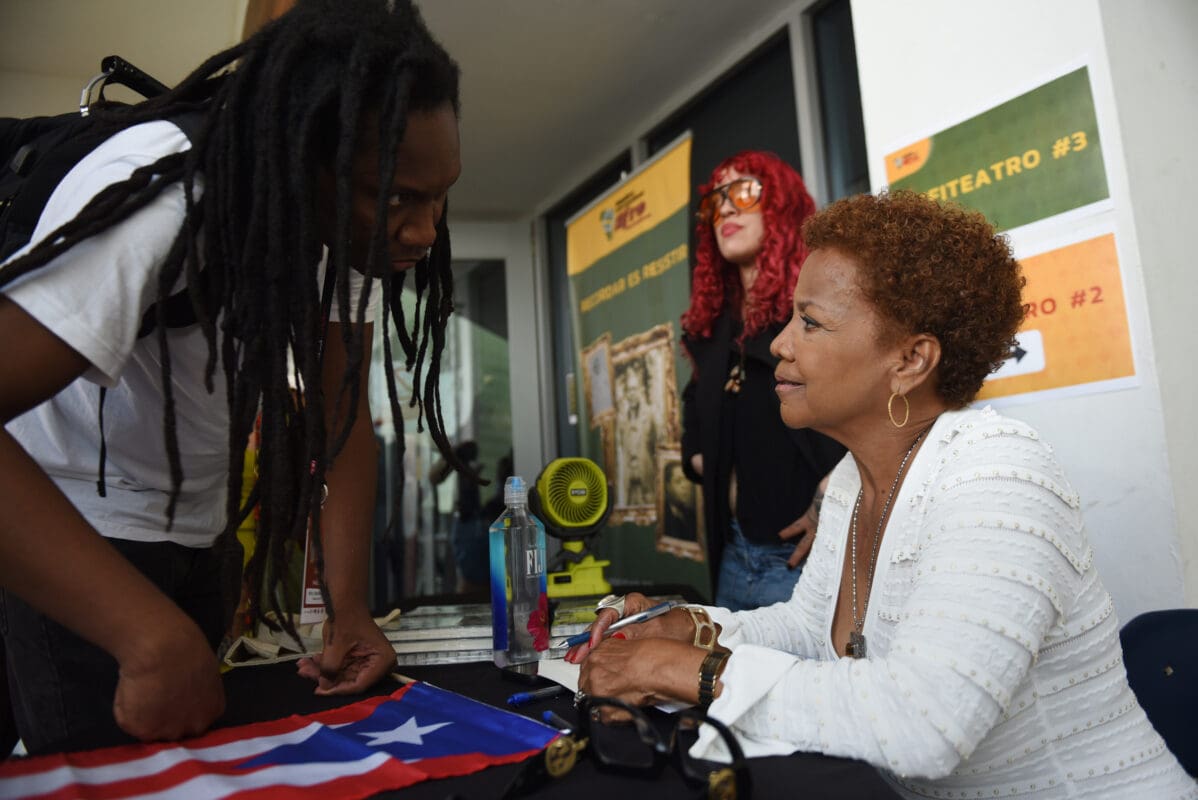 Orta estuvo acompañada por la catedrática Marie Ramos Rosado, quien le realizó preguntas sobre su vida y su trayectoria; y por Mayra Santos Febres, encargada de la organización de la Cumbre Afro por cuarto año consecutivo.