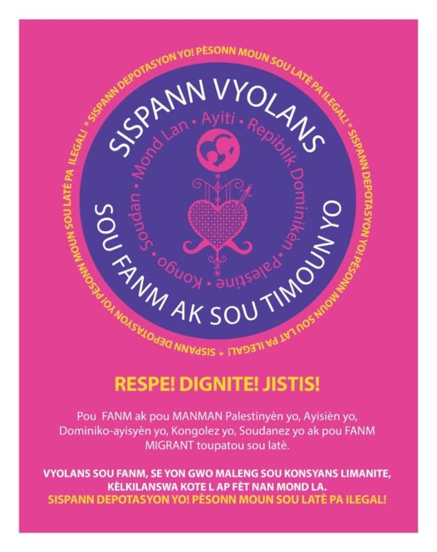 • Para las mujeres haitianas y dominico-haitianas, invisibilizadas y criminalizadas, a quienes se les niega el derecho a existir con plenitud. Comuna Caribe denuncia el gobierno racista y xenófobo de la República Dominicana que niega la atención médica a mujeres embarazadas y las deporta horas después de haber sido sometidas a una cesárea, exponiéndolas a serias complicaciones de salud, y deporta a niños y niñas a un país que no conocen, ni donde tienen vínculos familiares, separándoles de sus madres.