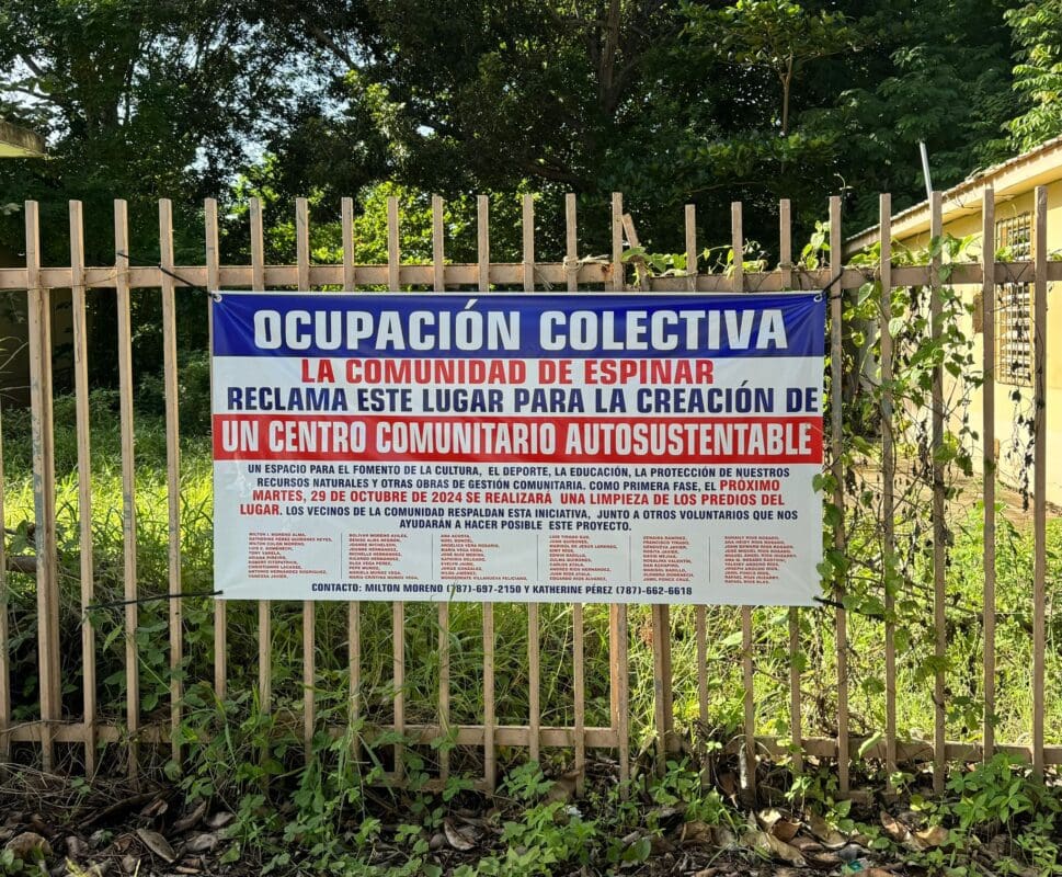 A finales del mes de octubre, apareció en el portón principal de la escuela abandonada un letrero que decía: “Ocupación Colectiva. La Comunidad de Espinar reclama este espacio para la creación de un centro comunitario autosustentable”. El anuncio contenía los nombres de más de 60 residentes que respaldan la ocupación de este plantel.