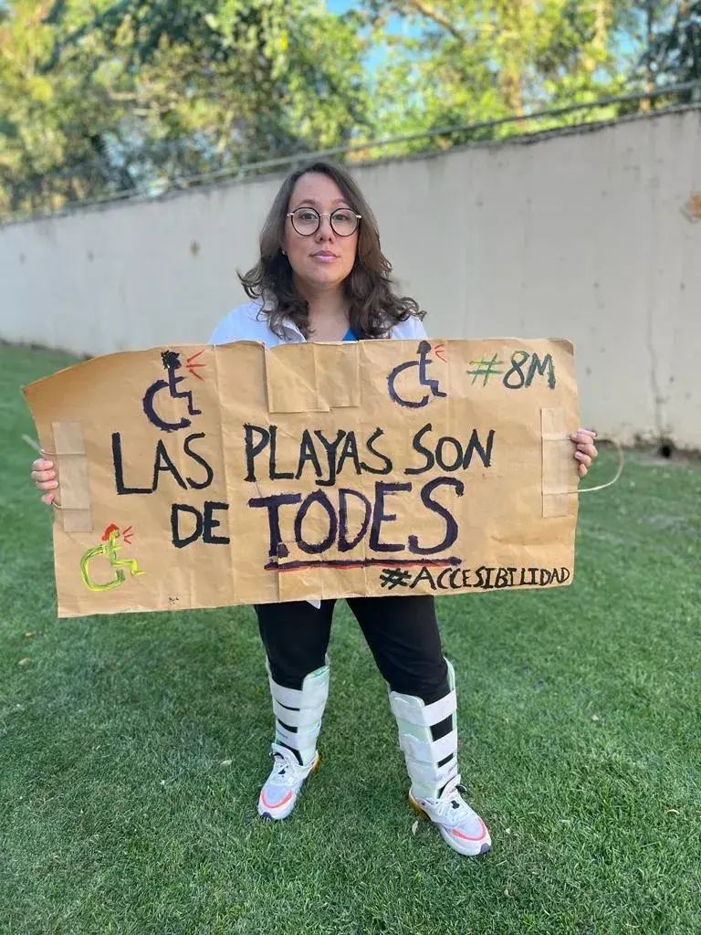 Eran muchos policías, una fila que hacía una barrera y sus caras eran de poco amigos. Estaba sola con mi caminador azul y una pancarta que, con humilde habilidad artística, había pintado a mano. Leía: “8M: Las playas son de TODES. #Accesibilidad”, y había dibujado varios íconos de personas en sillas de ruedas.