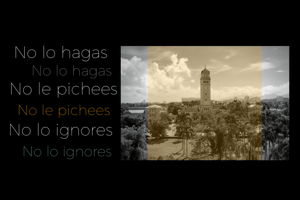 “Quería que fuera dirigida a la persona que violenta. No ponerle el peso, como siempre, a las frases ‘camina al carro con tus llaves’, ‘no camines sola’. Lo que queremos es que la persona que comete el acto, lo deje de hacer. El ‘no lo hagas’ va a esa persona, mientras que el ‘no le pichees’, a los otros. Queremos crear un sentido de responsabilidad. Apelar a que si están viendo algo que sabes que le incomodó a tu compañera de clases, profesor, empleado, no le pichees”, mencionó quien, como parte de su labor, dijo que se toman medidas para evitar represalias contra quien somete la queja.