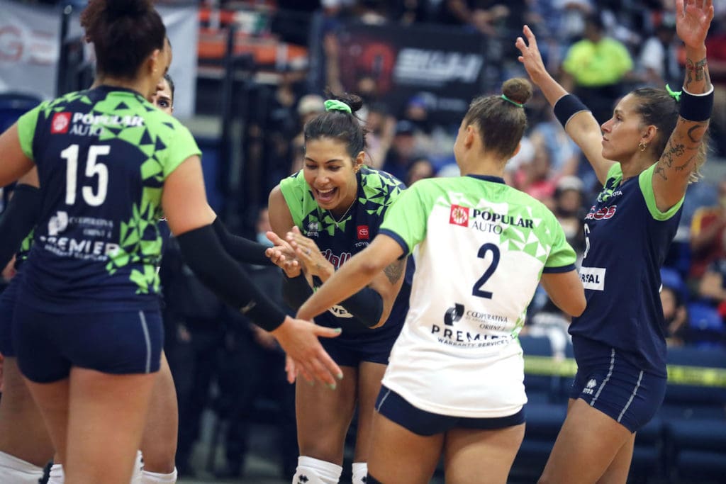 Juego inaugural de la Liga de Voleibol Superior Femenino entre Valencianas de Juncos y Criollas de Caguas en el Coliseo Mario “Quijote” Morales. Al centro, la jugadora Karina Ocasio. (Fotos por José Reyes | Centro de Periodismo Investigativo)