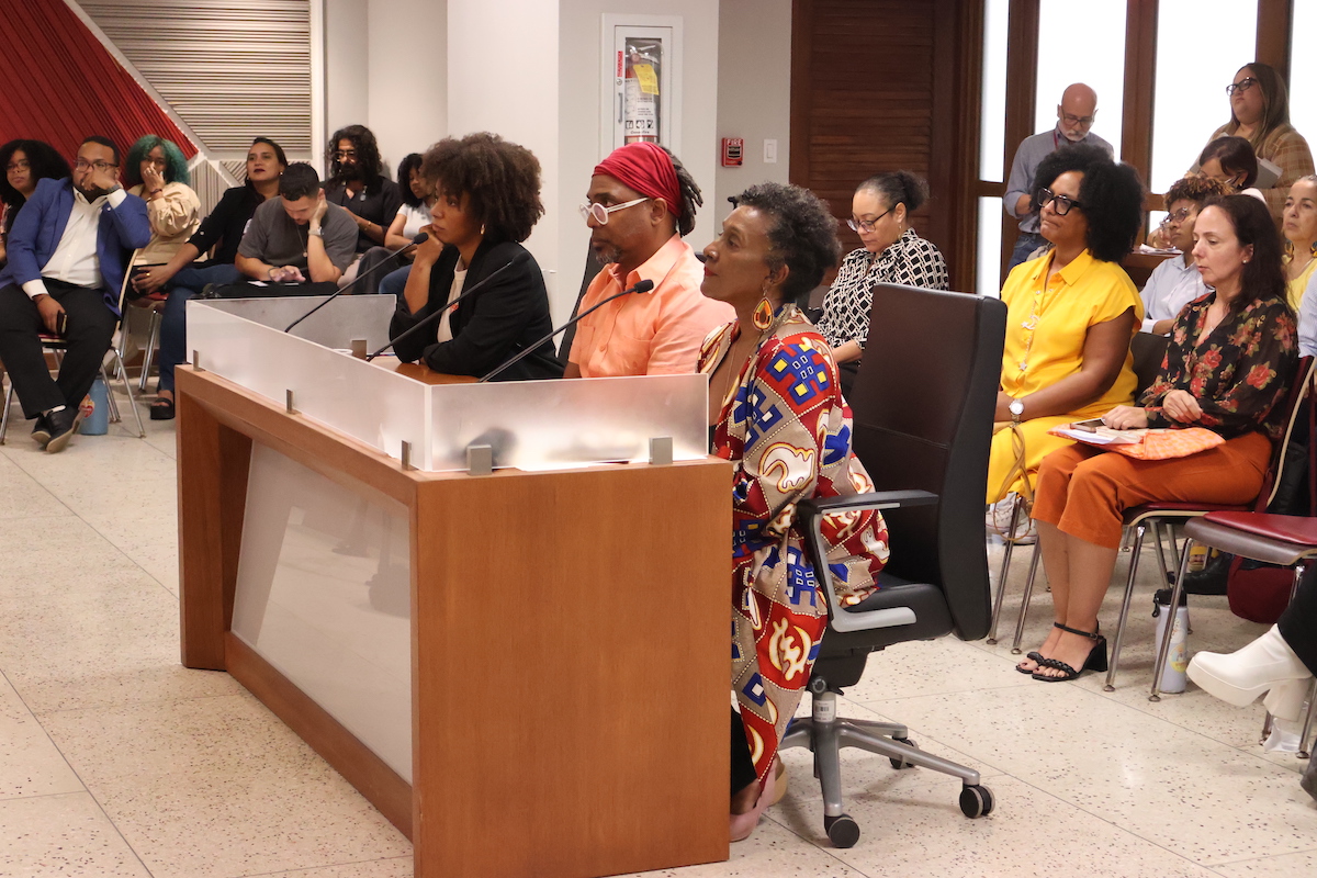 “Estas reglamentaciones son un acto violento debido a que les deja saber a la niñez negra y afrodescendiente que sus cabellos no son aceptados, que su ancestría no es aceptada y que para estar en dichos espacios deben cambiar su apariencia a una eurocéntrica”, expuso Ruiz Guevara en el salón María Martínez de Pérez Almiroty durante la vista del 23 de enero.