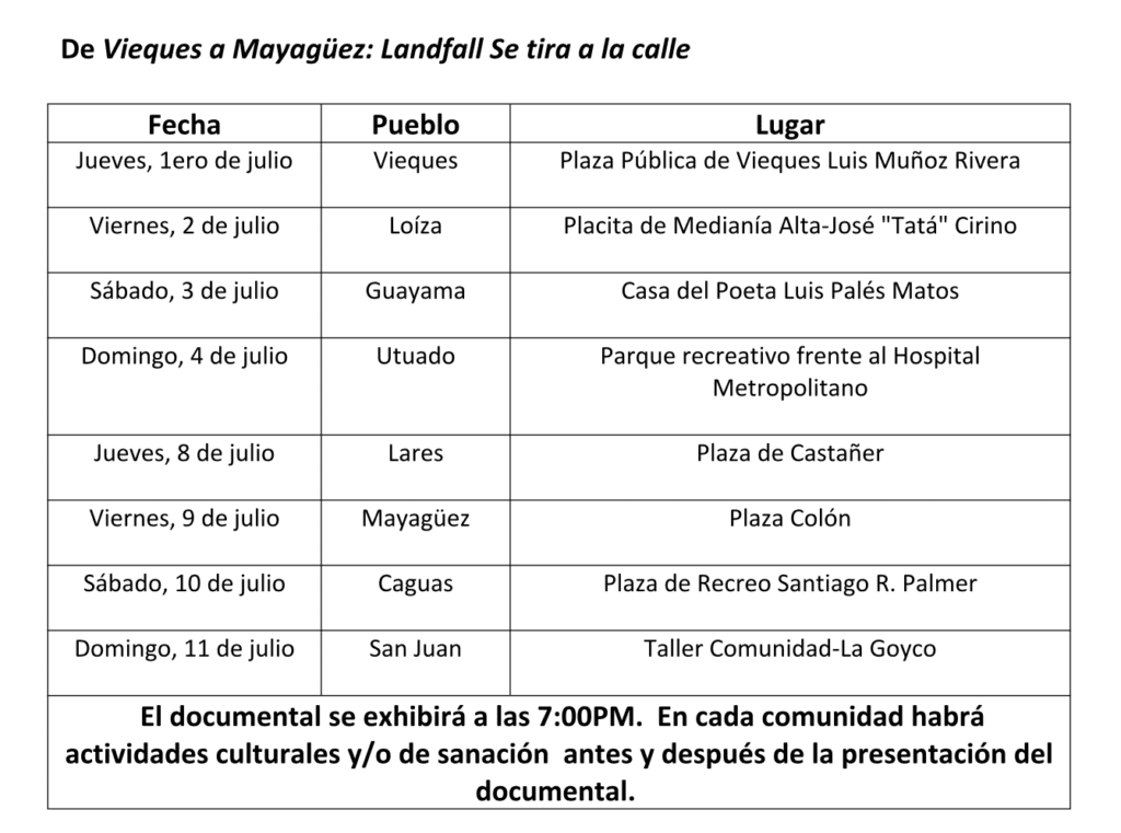El largometraje será presentado por la isla, desde el 1 al 11 de julio, en diferentes plazas públicas a través de la gira De Vieques a Mayagüez: Landfall se tira a la calle.