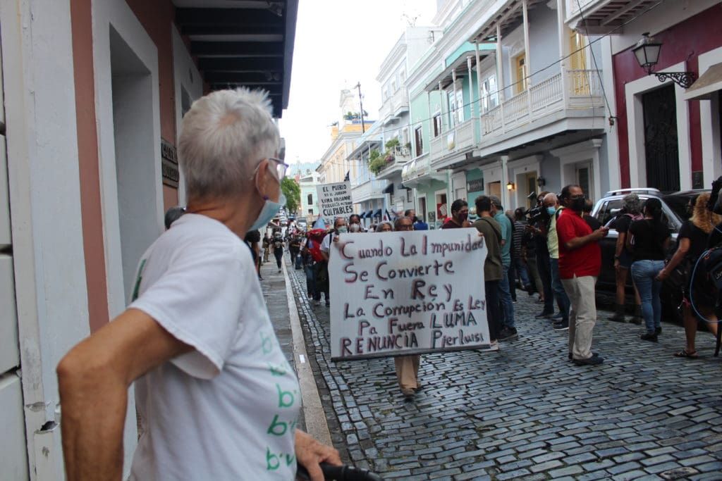 Las fallas y precariedad del sistema eléctrico en Puerto Rico afecta principalmente a los pacientes encamados y madres jefas de familia que ante la ineficiencia están siendo expuestos a más violencias, denunciaron activistas en la protesta LUMA Fuera en la calle Fortaleza, renombrada por muchos como calle Resistencia, en el Viejo San Juan.