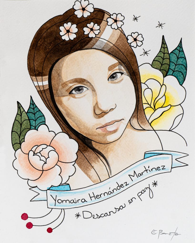 Desde el dolor y la rabia, la ilustradora Elizabeth Barreto creó una serie de retratos de las mujeres asesinadas, en el 2019, que se exhibe en el Museo de las Américas en el Cuartel de Ballajá, en el Viejo San Juan.