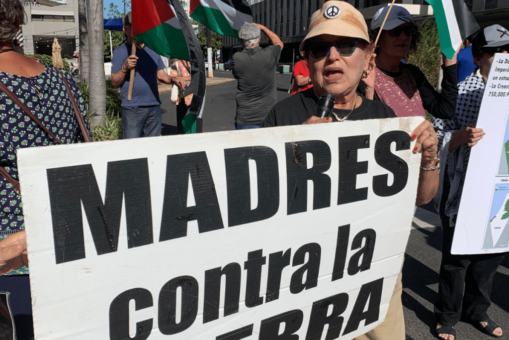 Bajo el lema “no es una guerra, es un genocidio”, Madres contra la Guerra y otras organizaciones, como el Comité Pro Derechos Humanos de Puerto Rico llevan manifestándose semanalmente frente a las oficinas del Consulado de Israel en Puerto Rico, desde noviembre de 2023.