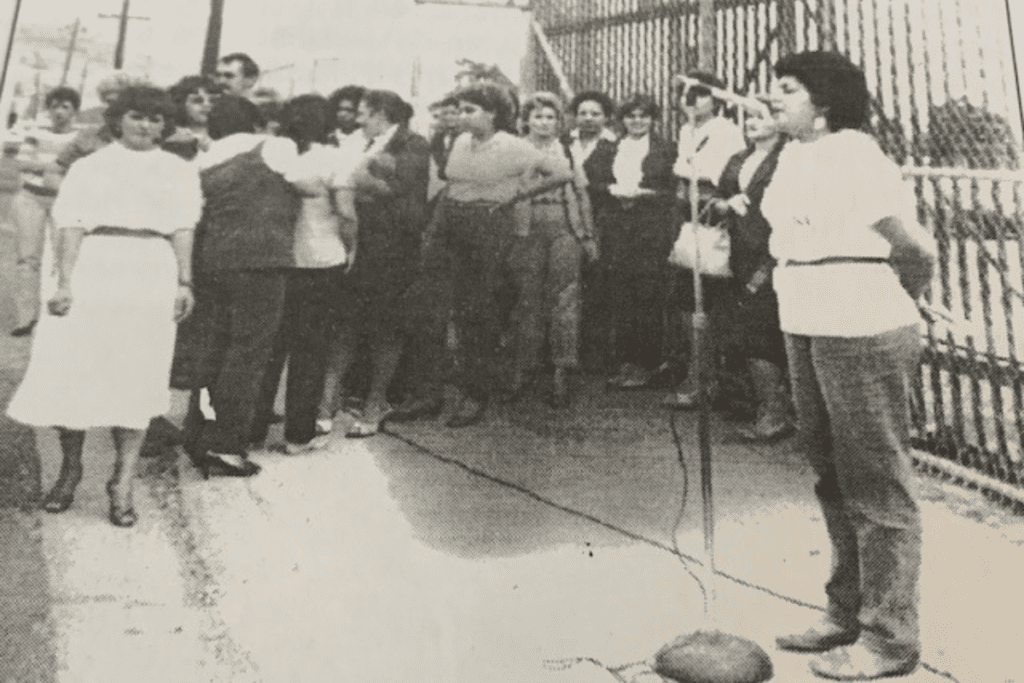 (Foto suministrada que muestra, en 1983, el respaldo a las trabajadoras de la desaparecida industria RCA en Juncos, quienes luchaban por mejorar sus condiciones de trabajo y retaban al liderato de la Unión que las representaba inadecuadamente.)