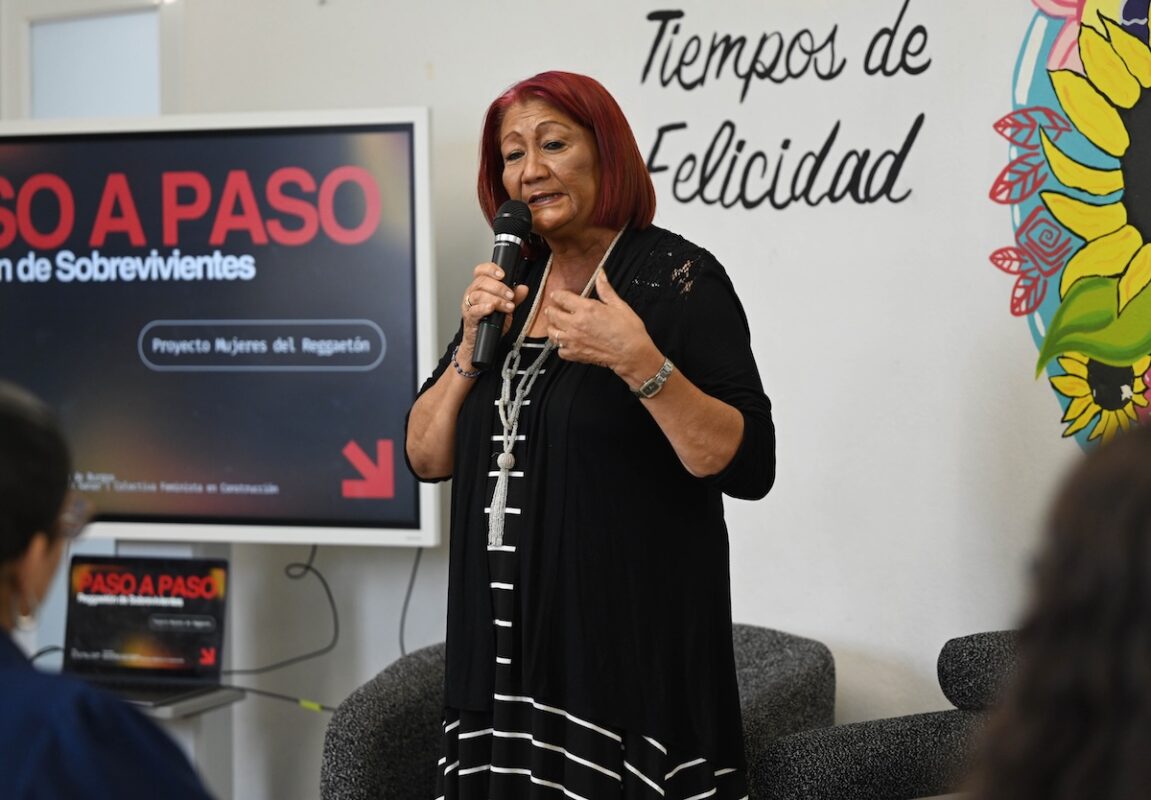 Varias de ellas —algunas con sus hijos e hijas— están esta mañana en un luminoso y acogedor salón compartiendo piscolabis y hablando de temas cotidianos en lo que empieza Paso a paso: reggaetón de sobrevivientes, una actividad especial en la que participarán algunas de las pioneras del reguetón.