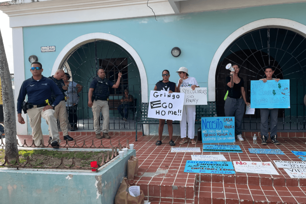 El pasado jueves, residentes viequenses exigían una moratoria de ventas y vivienda digna frente al Centro de Usos Múltiples, lugar en el que, ese mismo día, se realizaría una subasta de 10 propiedades.