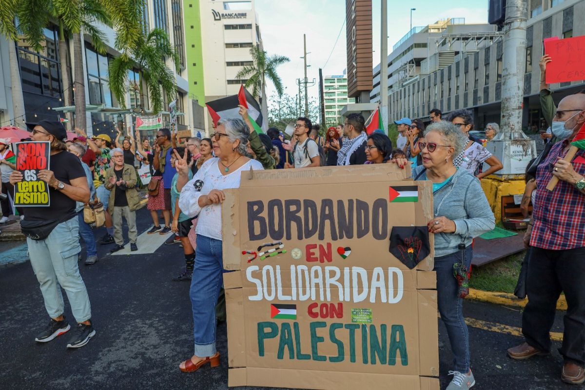 The embroiderers culminated the work on International Migrants Day, Monday, and joined a demonstration in front of the Israeli consulate in Puerto Rico.