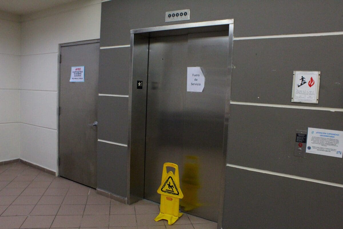 Desde el año pasado, un ascensor en el Recinto de Bayamón está fuera de servicio. Foto por Víctor Rodríguez Velázquez | Centro de Periodismo Investigativo