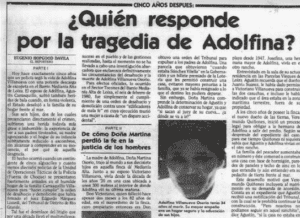 Mujer negra, pobre, sin preparación académica y madre de seis hijos que fue asesinada el 6 de febrero de 1980 a manos de un sargento de la Fuerza de Choque mientras intentaba defender su hogar de expropiación. En numerosas ocasiones, Adolfina intentó dar batalla buscando ayuda legal y acudiendo a la Oficina de Ayuda al Ciudadano en la Fortaleza, donde no fue recibida. El 6 de febrero se enfrentó a cinco alguaciles y a, aproximadamente, 16 agentes de la Fuerza de Choque de la Policía de Puerto Rico que buscaban cumplir una orden de desahucio. Luego que estos lanzaran gases al interior de la residencia para forzar a la familia a salir, Adolfina salió con machete en mano y lanzó gas kerosén. Casi inmediatamente una lluvia de disparos de escopeta arroparon el hogar en el que también se encontraban dos de sus hijos y su esposo, el cual resultó herido. El sargento responsable de la muerte de Adolfina fue absuelto en juicio por jurado. Nadie respondió por los ataques a su familia, ni por la destrucción de sus pertenencias al demoler el hogar a solo horas de los hechos.